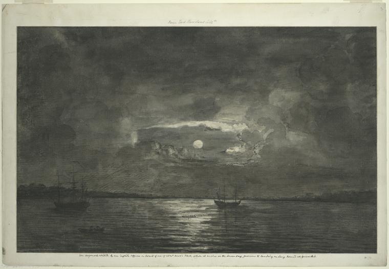 An Original Sketch by an English Officer on Board of One of Adml Howe’s Fleet, while at anchor in the lower bay, previous to landing on Long Island at Graves-End